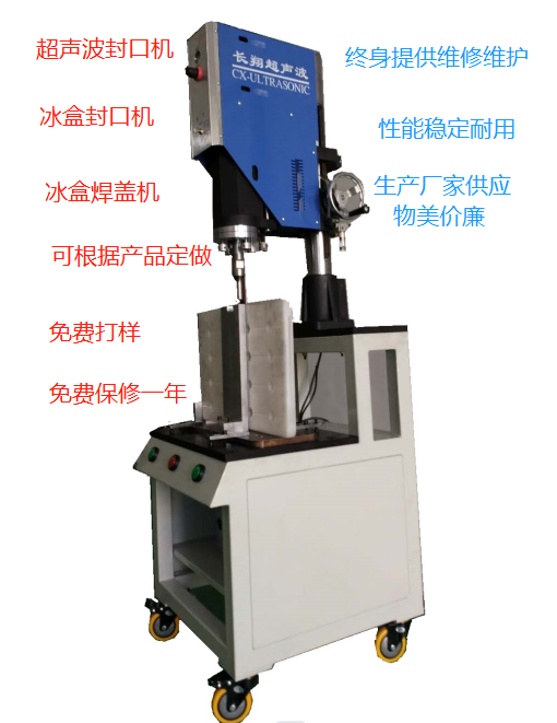 塑料桶蓋瓶蓋超聲波焊接機(jī):又稱機(jī)油桶蓋超聲波焊接機(jī),也屬于長翔一款經(jīng)濟(jì)款超聲波焊接設(shè)備,本機(jī)功率:1500W,頻率:20KHZ,輸入電壓:220V,輸出時(shí)間:0.01-9.99S,焊接面積:190mm,使用壓縮機(jī):1HP,氣壓范圍:1-8bar,振蕩系統(tǒng):線路,電流指示:輸出振幅指示,外形尺寸:550*450*1100mm,電箱尺寸:510*490*200mm,凈重:100kg。